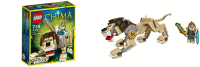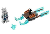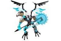 | ヒグマ族の強敵シロクマ族が、またもやチーマに侵入したぞ!ハゲワシ族のボーノンの助けをかりて、アイスクローが盗んだ「チ」を持って、超高速アイススレッジに乗って逃亡中だ。ファイヤーハーネスとファイヤーウィングでブラビックをパワーアップしたら、超カッコいいランブルベアーに乗って追いかけろ。ボールシューターを撃ちながら、アイスクローのフリーズキャノンからの攻撃をよけたら、ランブルベアーを「ファイヤー・チ」パワーモードからファイターモードに切り替えろ。ブラビックの強力なバトルマシーンのうで、あし、頭を戦闘ポーズにして、敵の戦士をあっとうしよう!ブラビック、アイスクロー、ボーノンの3体のミニフィギュアと武器付き。 |