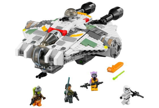 | 反乱軍のヒーローたちがスターシップ「ゴースト」に乗って帝国軍とのバトルに備えているぞ。テレビアニメシリーズ「スター・ウォーズ:レベルズ」のスリルあふれるシーンを再現しよう!反乱軍のミニフィギュアを2つのコックピットに乗せよう。ゼブを360度回転するガンタレットにつけて見はらせよう。スターシップ「75048