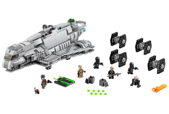エピソード5/帝国の逆襲」のハン・ソロが捕らえられる場面を再現しよう!カーボンフリーズされた反乱軍のヒーローを貨物庫に乗せてベスピンから離陸しろ!ボバ・フェット、べスピン・ガード、ストームトゥルーパー、ハン・ソロの4体のミニフィギュアと武器付き。 |